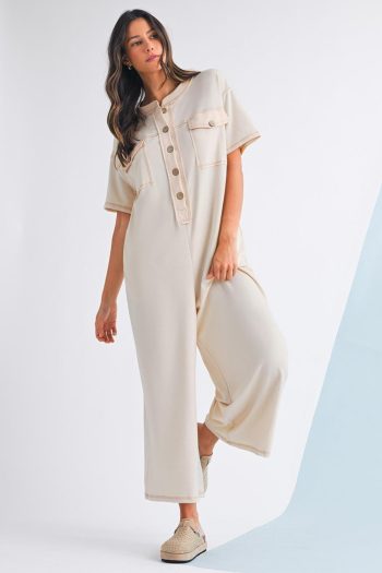 Rompers | Sepia Rose Floral Print Pockets Loose Casual Romper – Women
