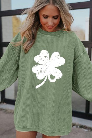 Women Sweatshirts | Green Lucky Clover Graphic Corded Crewneck Sweatshirt