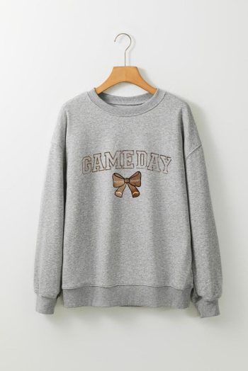 Women Sweatshirts | Gray Game Day Football Bow Embroidered Casual Sweatshirt