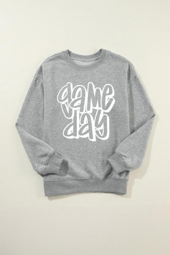 Women Sweatshirts | Gray Game Day Printed Round Neck Sweatshirt