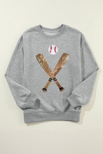 Women Sweatshirts | Gray Sequin Baseball Graphic Crewneck Game Day Sweatshirt