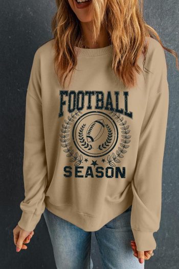 Women Sweatshirts | Khaki Game Day Rugby Football Season Graphic Sweatshirt