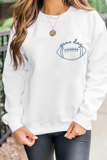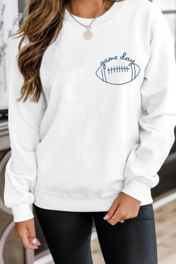 Women Sweatshirts | White Game Day Football Embroidered Casual Sweatshirt
