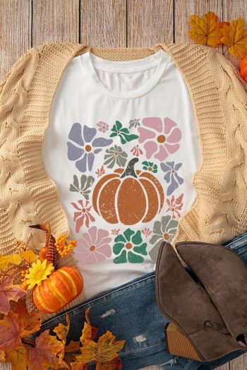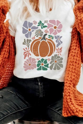 Women Tees & Tanks | White Flower Pumpkin Distressed Graphic T Shirt