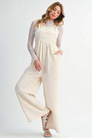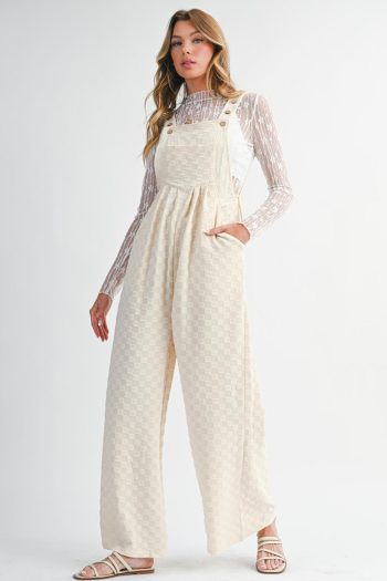 Jumpsuits | Beige Checkered Pocket High Waist Wide Leg Overall – Women