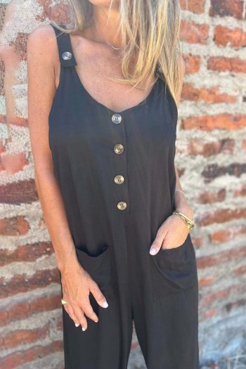 Jumpsuits | Black Button Pockets Open Back Loose Strappy Jumpsuit – Women