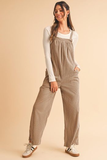Jumpsuits | Gray Morn Plain Pocketed Loose Fit Corduroy Overalls – Women