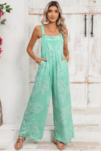Jumpsuits | Moonlight Jade Abstract Print Wide Leg Bib Overall – Women