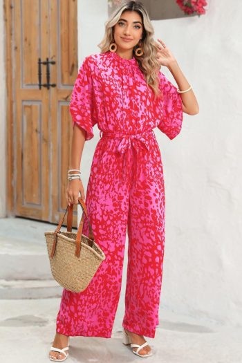 Jumpsuits | Rose Leopard Print Tulip Sleeve Belted Wide Leg Jumpsuit – Women