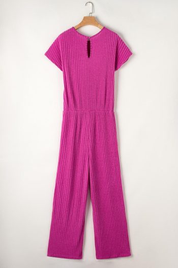 Jumpsuits | Rose Red Solid Color Ribbed Short Sleeve Wide Leg Jumpsuit – Women
