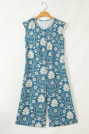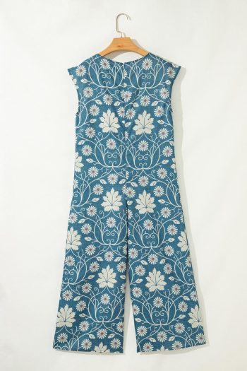 Jumpsuits | Sky Blue Retro Floral Print Loose Jumpsuit – Women