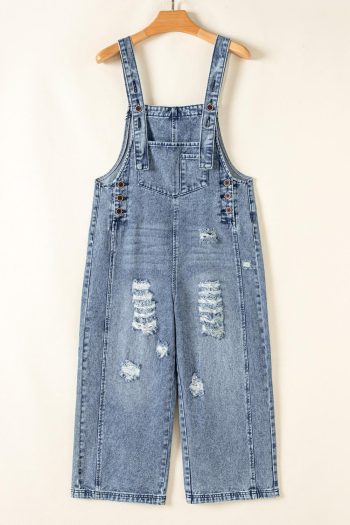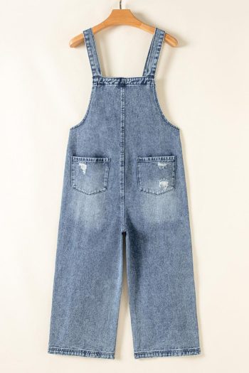 Jumpsuits | Stone Blue Distressed Bib Pocket Wide Leg Denim Overall – Women