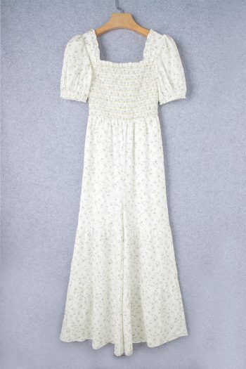 Jumpsuits | White Ditsy Floral Smocked Puff Sleeve High Waist Jumpsuit – Women
