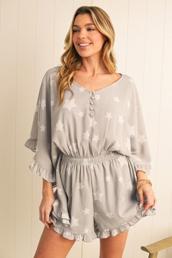 Rompers | Light Grey Waffle Knit Sleeveless Buttoned Front Drawstring Waist Romper – Women