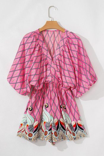 Rompers | Pink Paisley Geometric Print V Neck High Waist Romper – Women