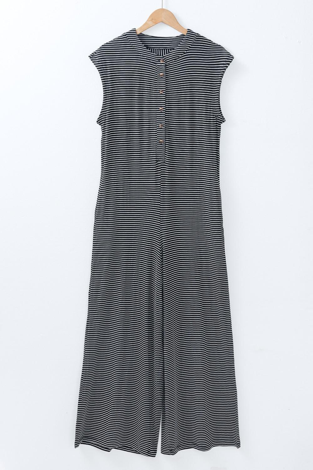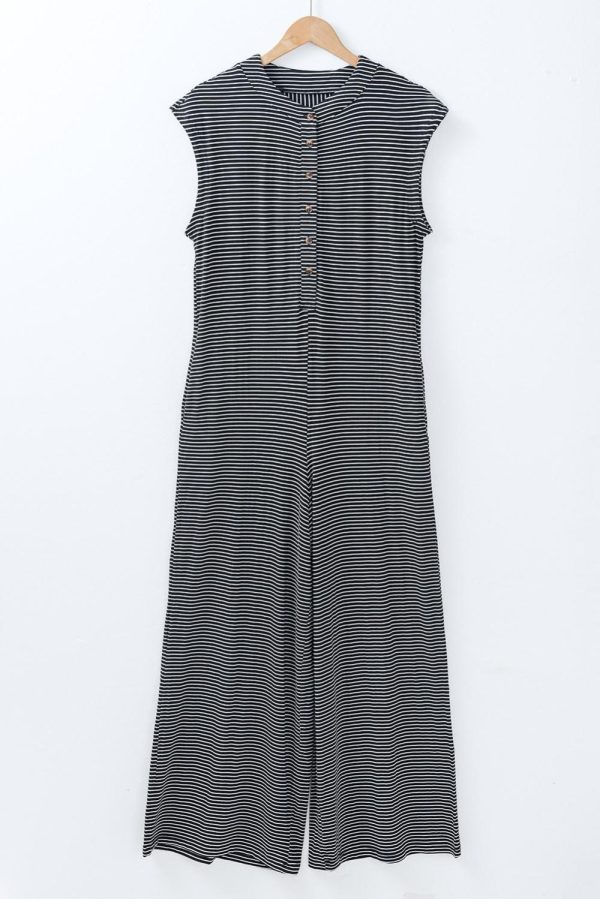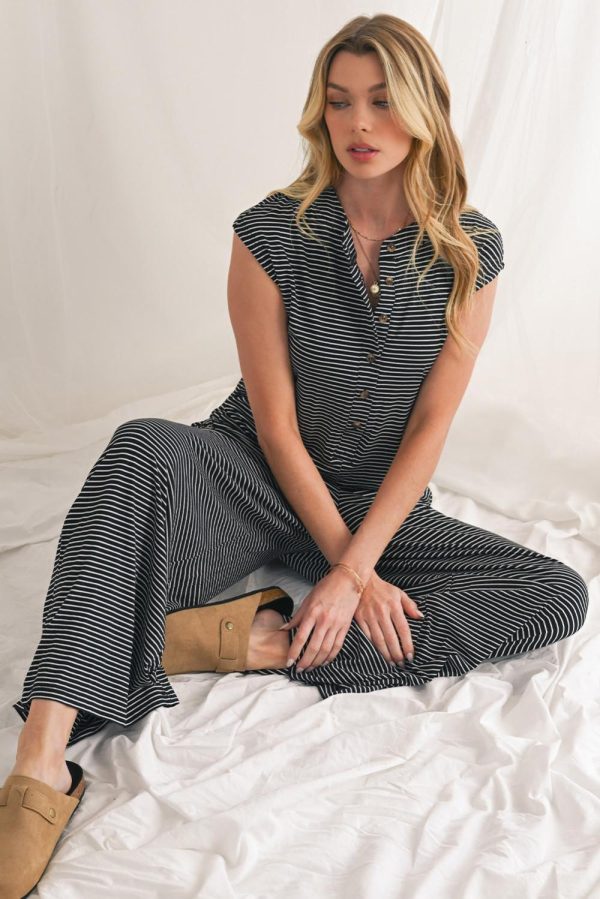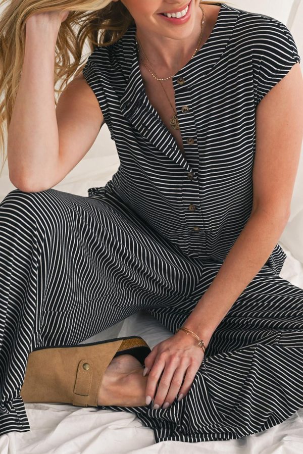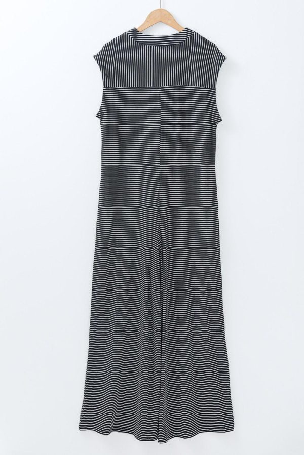 • The Relaxed Fit And Wide-Leg Silhouette Of This Jumpsuit Provide A Comfortable And Flattering Look For Various Body Types. The Stylish Black And White Stripes Elongate The Body, Creating A Sleek And Elegant Aesthetic.
