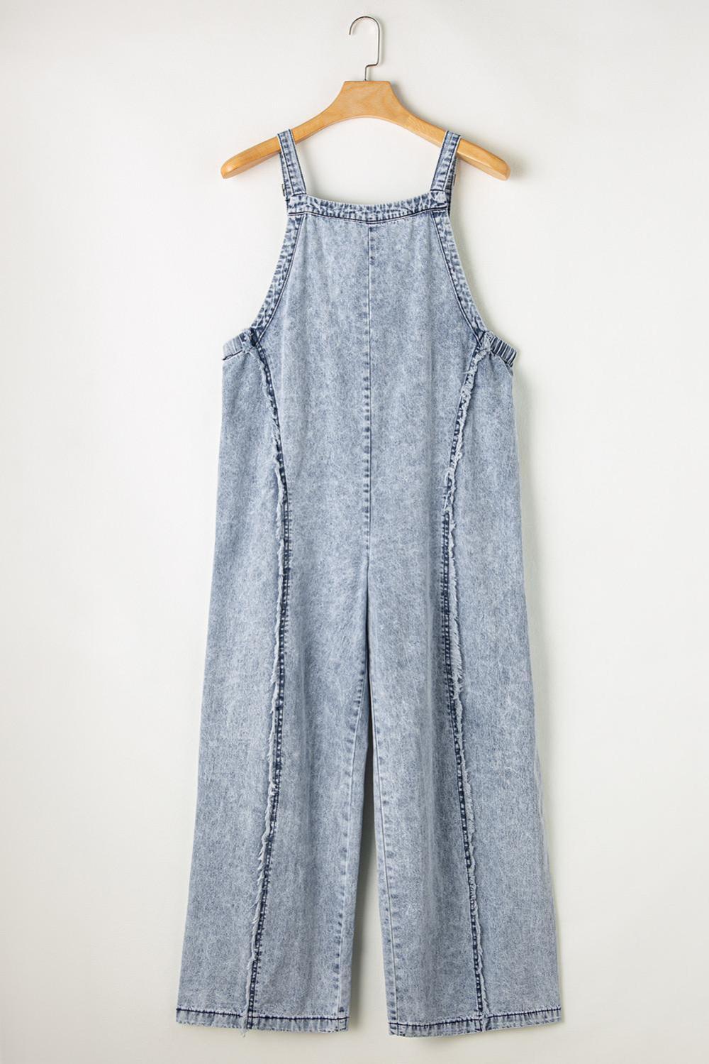 Jumpsuits | Blue Light Wash Frayed Exposed Seam Wide Leg Denim Overalls – Women