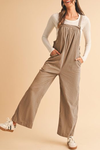 Jumpsuits | Gray Morn Plain Pocketed Loose Fit Corduroy Overalls – Women