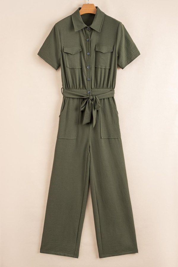 - Featuring A Belted Waist, This Jumpsuit Offers A Flattering Silhouette While Providing Comfort And Ease Of Movement.