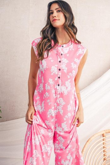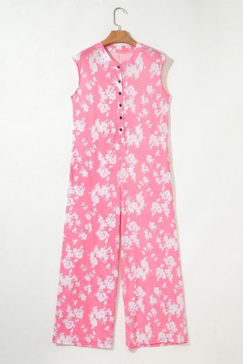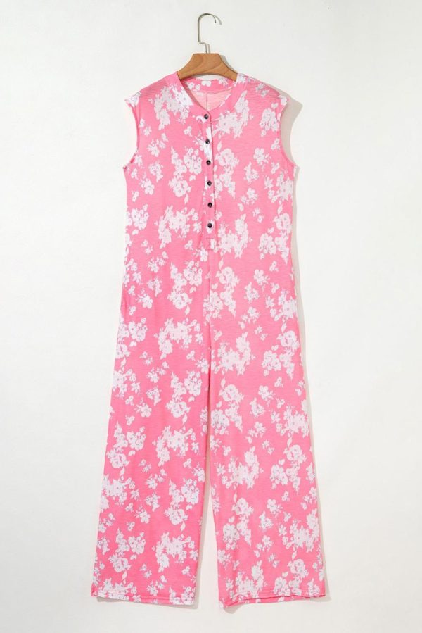 Jumpsuits | Pink Floral Print Sleeveless Wide Leg Jumpsuit – Women