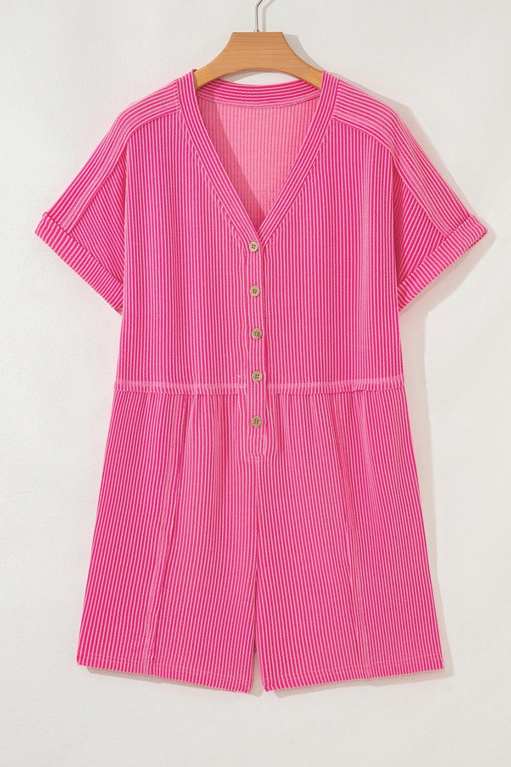 - Crafted With A V-Neck Design And Short Sleeves, This Romper Offers A Flattering Silhouette That Is Both Relaxed And Chic.