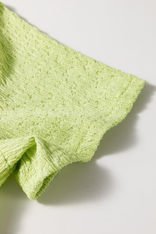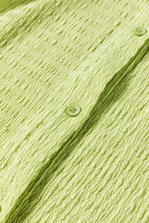 Rompers | Meadow Mist Green Textured Short Sleeve Patched Pocket Buttoned Shirt Romper – Women