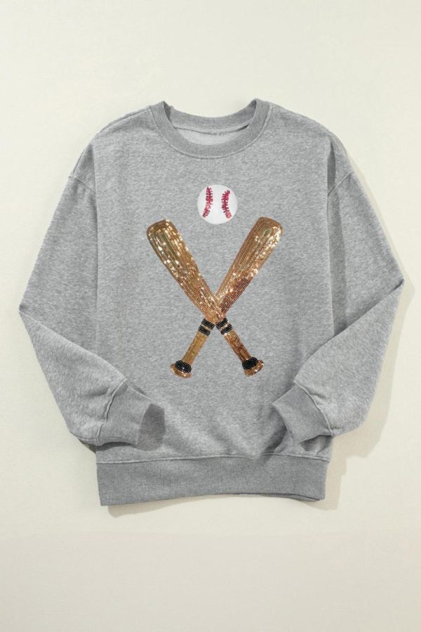 Women Sweatshirts | Gray Sequin Baseball Graphic Crewneck Game Day Sweatshirt