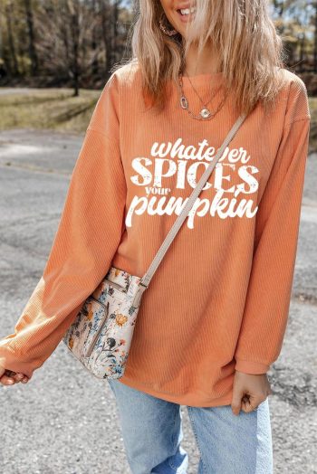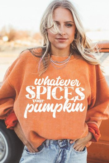 - "Whatever Spices Your Pumpkin" Graphic For A Fun And Quirky Touch To Your Outfit.