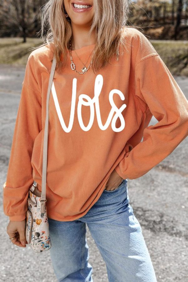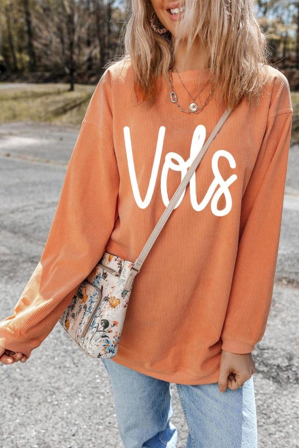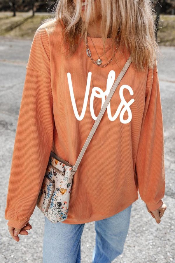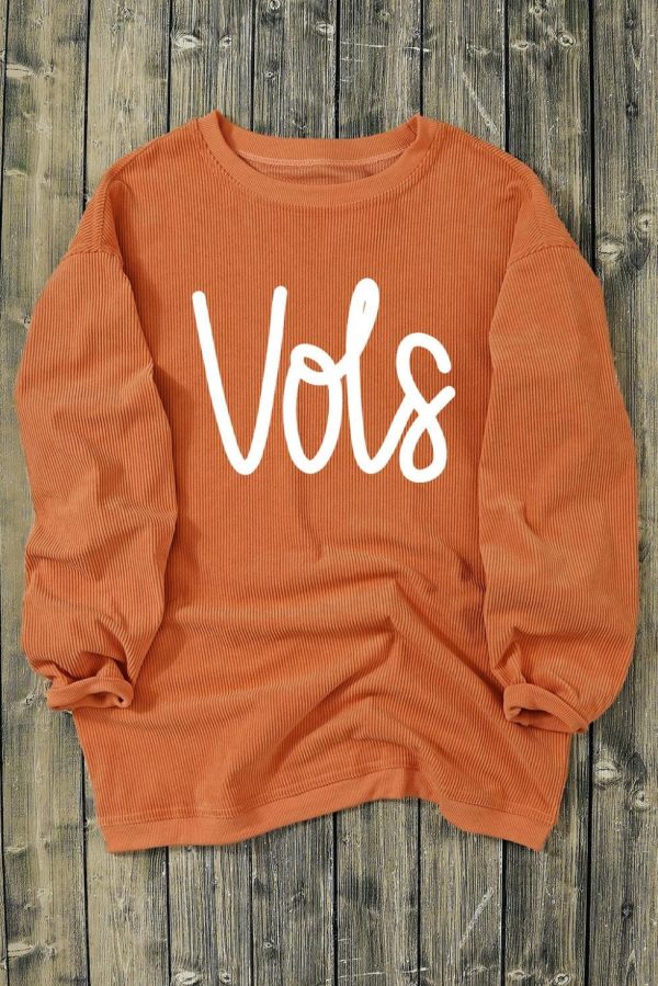 Women Sweatshirts | Orange Vols Letter Graphic Crinkle Ribbed Oversized Sweatshirt