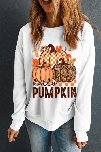 Women Sweatshirts | White Hello Pumpkin Thanksgiving Graphic Sweatshirt
