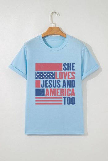 Women Tees & Tanks | Light Blue She Loves Jesus And America Too Patriotic T Shirt